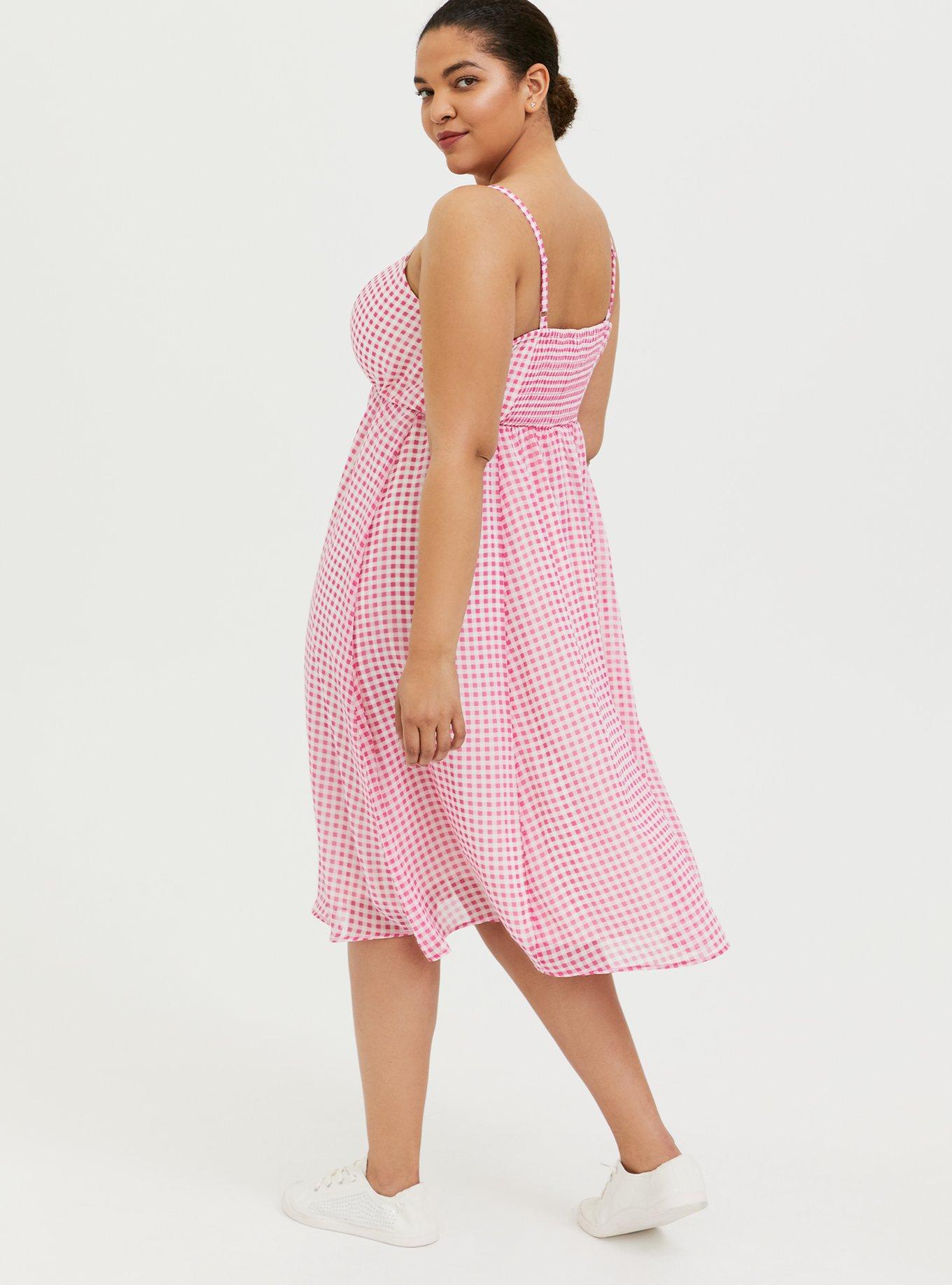 Plus Size Hot Pink Gingham Chiffon Button Midi Dress Torrid