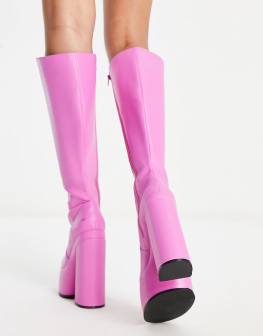 ASOS DESIGN Captivate extreme platform knee boots in pink ASOS