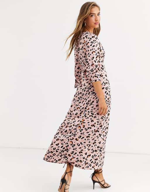 Liquorish wrap front maxi dress in pink leopard print ASOS