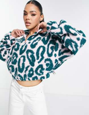 Pink leopard sherpa hoodie clearance, Reebok Classics leopard print half zip sherpa sweatshirt in pink blue clearance