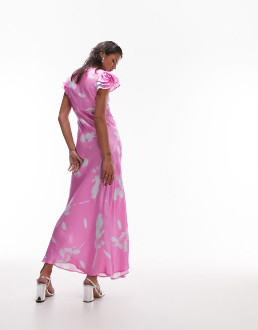 Pink v neck maxi dress clearance, Topshop angel sleeve v neck maxi dress in pink floral print ASOS clearance