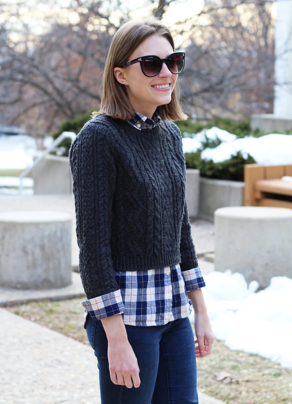 Plaid under sweater clearance, How to Style It Plaid Shirt Outfits Merrick s Art clearance