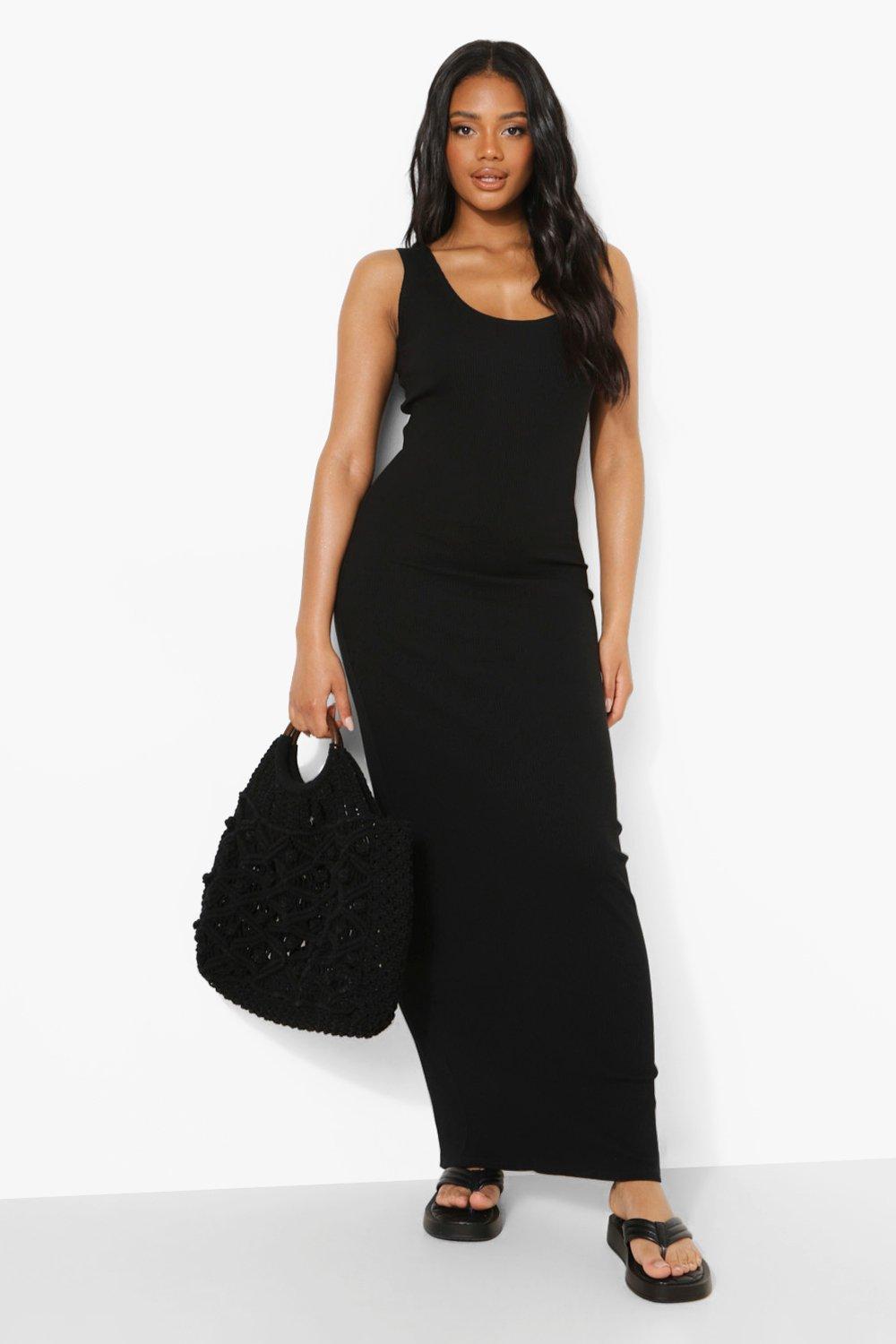 Women s Petite Rib Scoop Neck Maxi Dress Boohoo UK