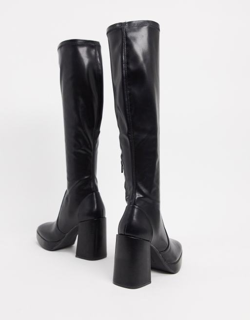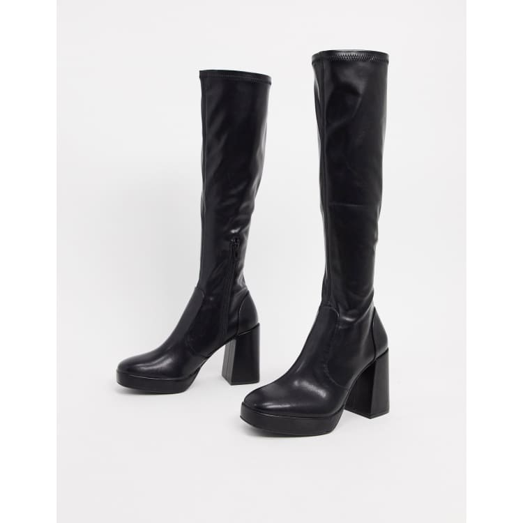 Plateforme pull and bear clearance, Pull Bear platform heel knee boots in black ASOS clearance