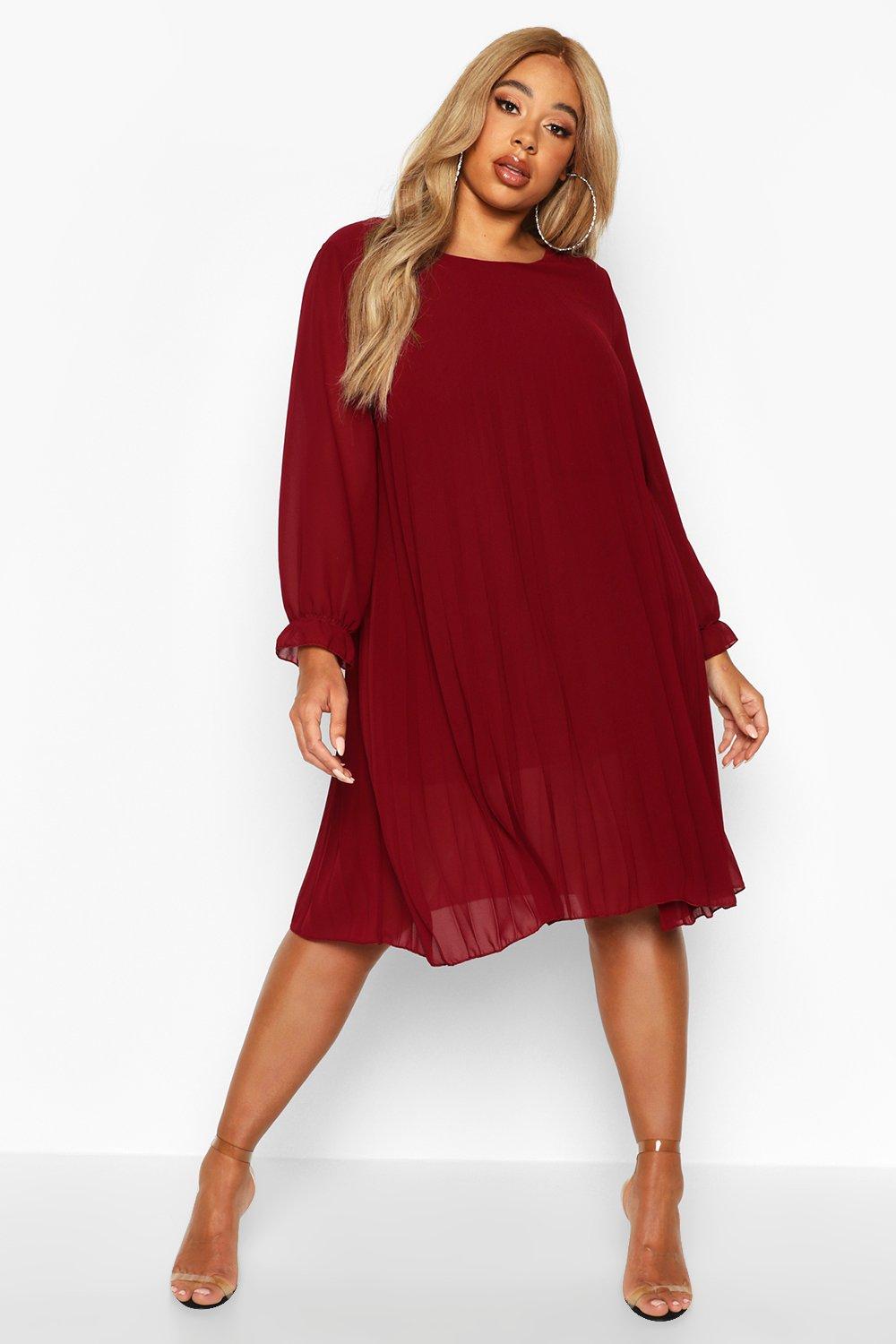 Women s Plus Pleated Swing Dress Boohoo UK