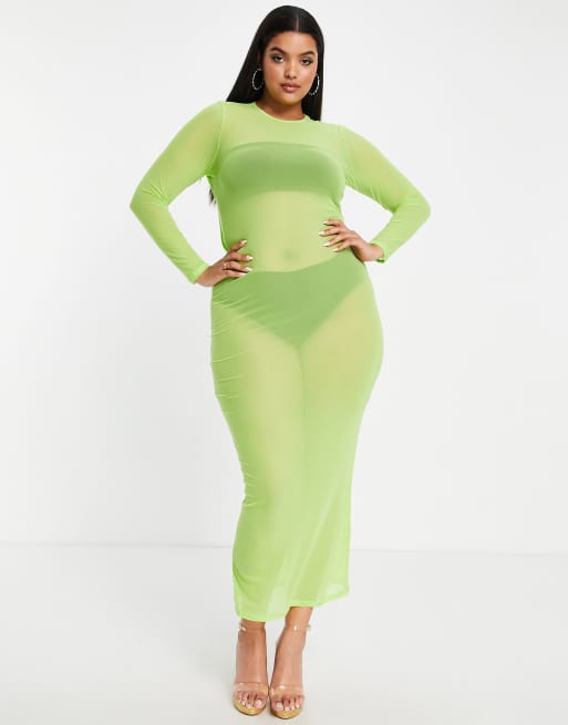 Simmi Plus long sleeve sheer maxi dress in lime ASOS