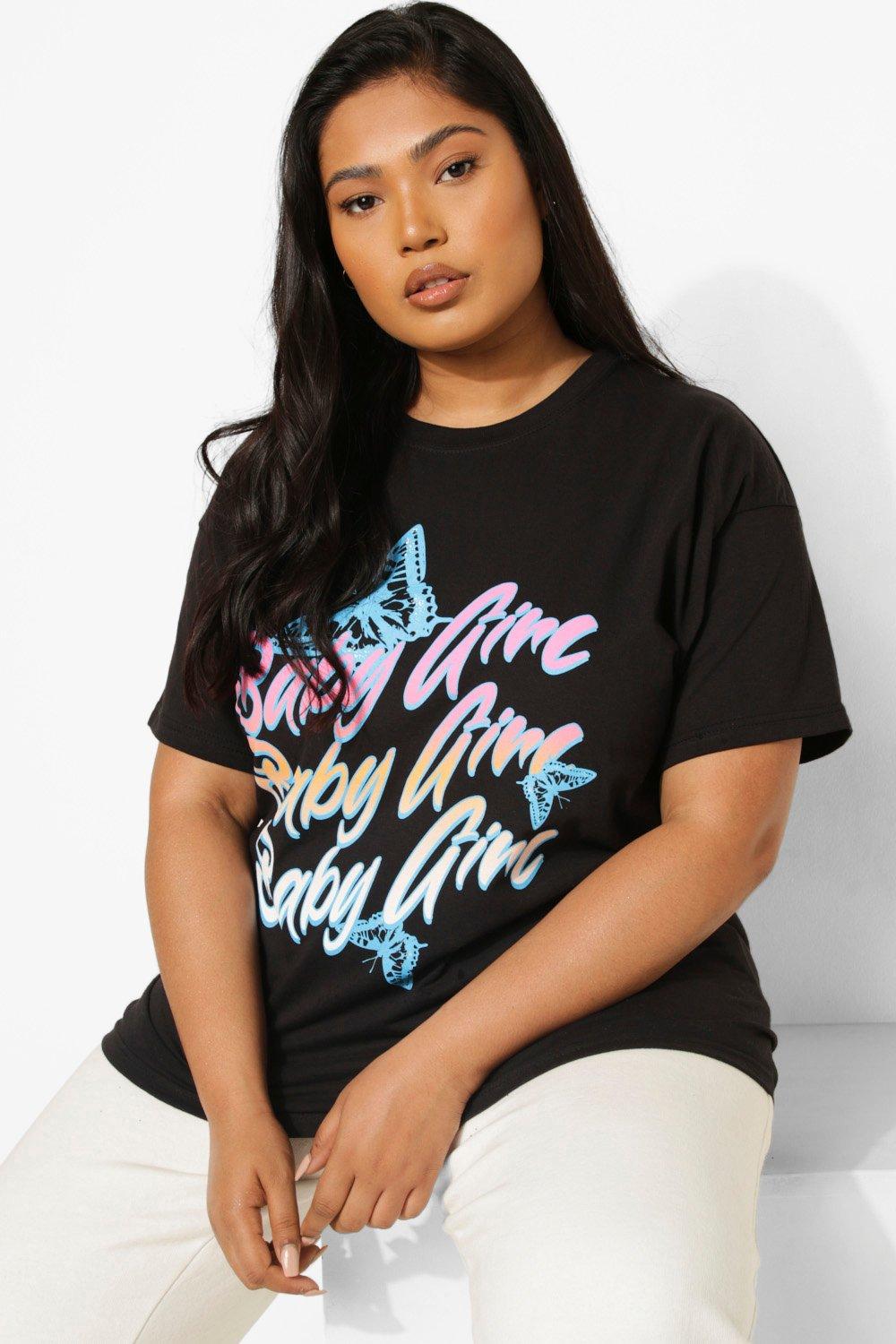 Women s Black Plus Babygirl T shirt Boohoo UK