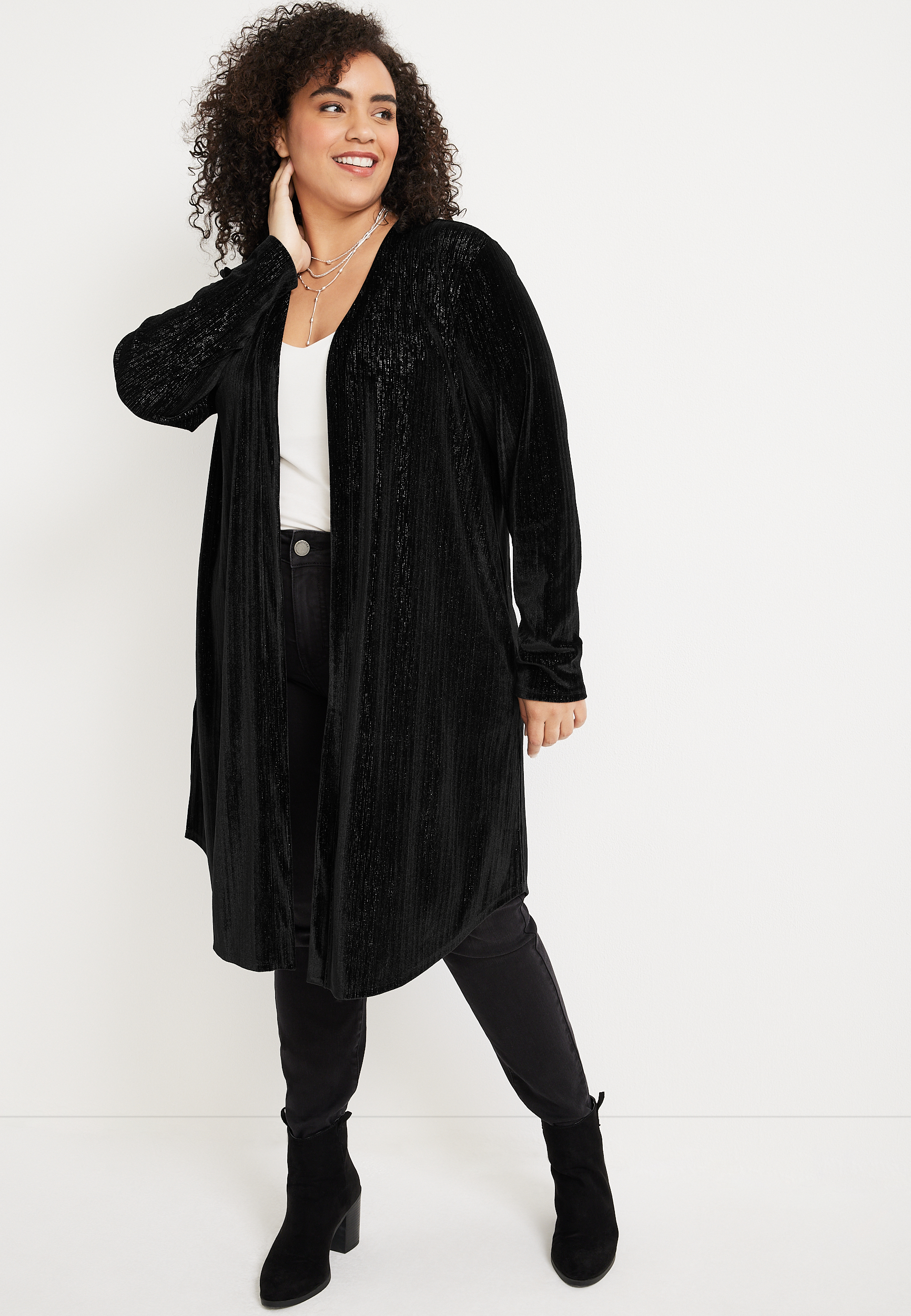 Plus Size Black Metallic Velvet Duster Cardigan maurices