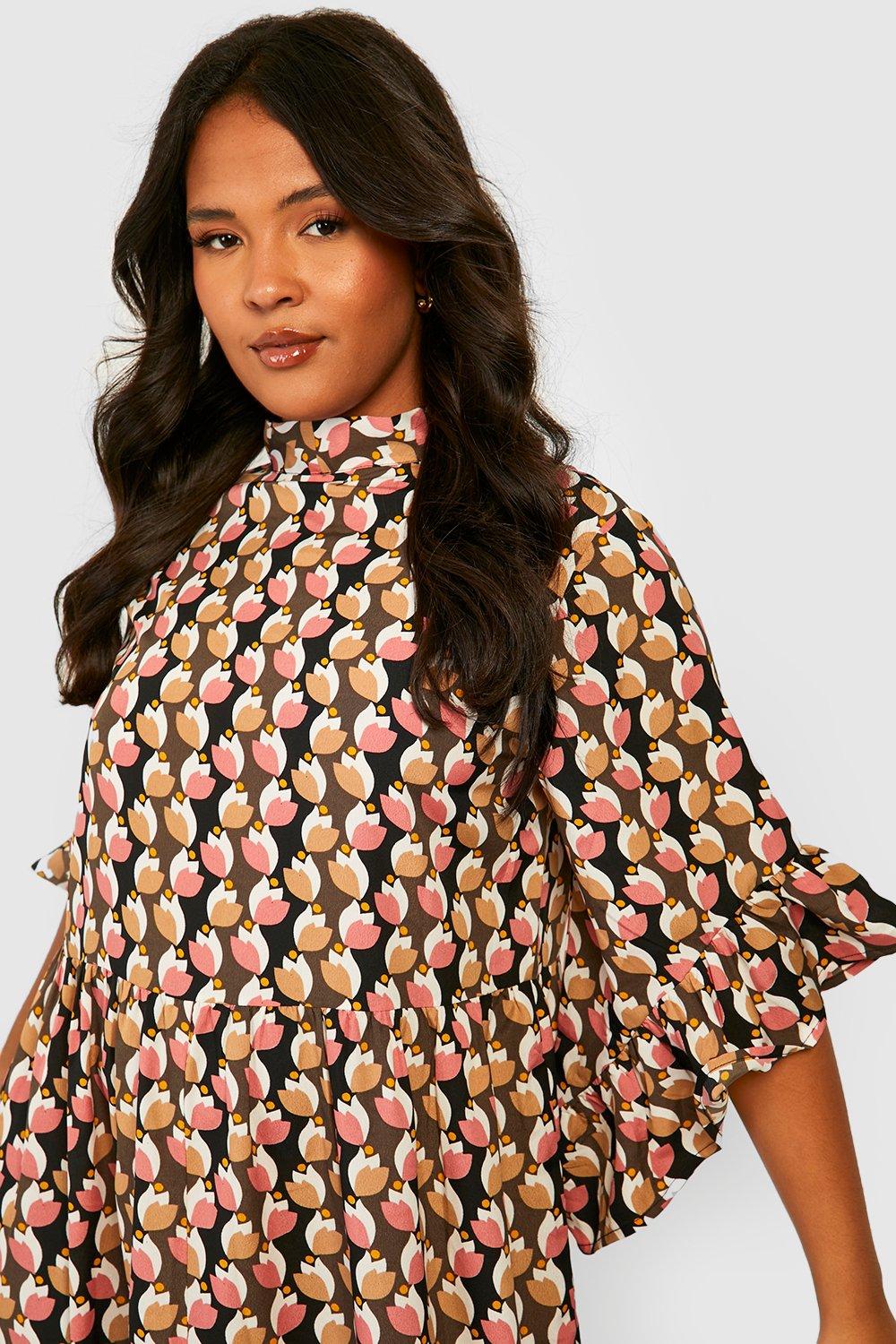 Plus size blouse dress clearance, Women s Plus Frill Detail Midaxi Shirt Dress Boohoo UK clearance