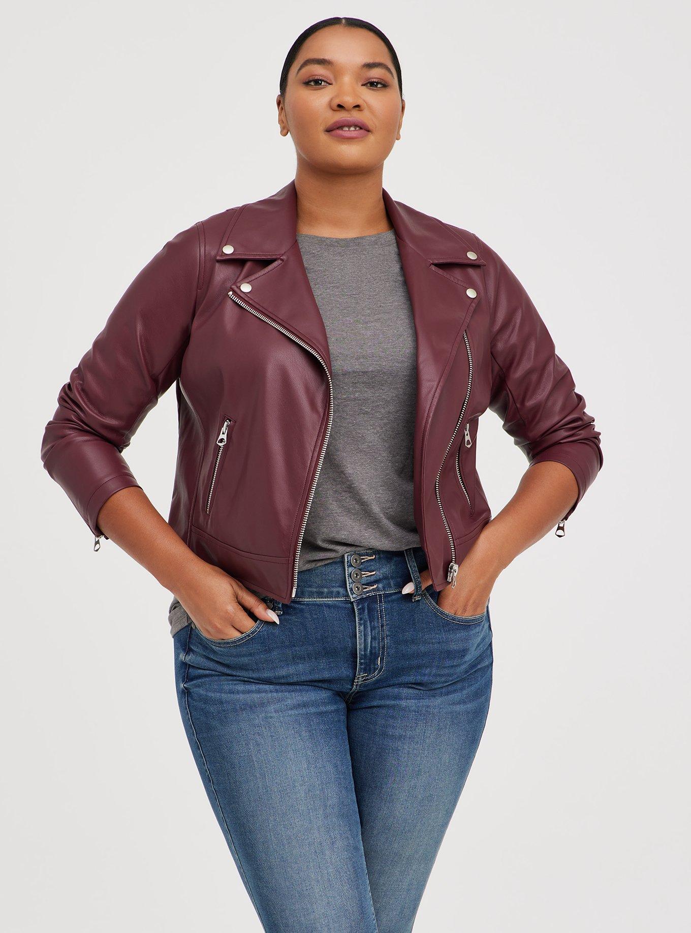 Plus Size Ryder Crop Vegan Leather Jacket Burgundy
