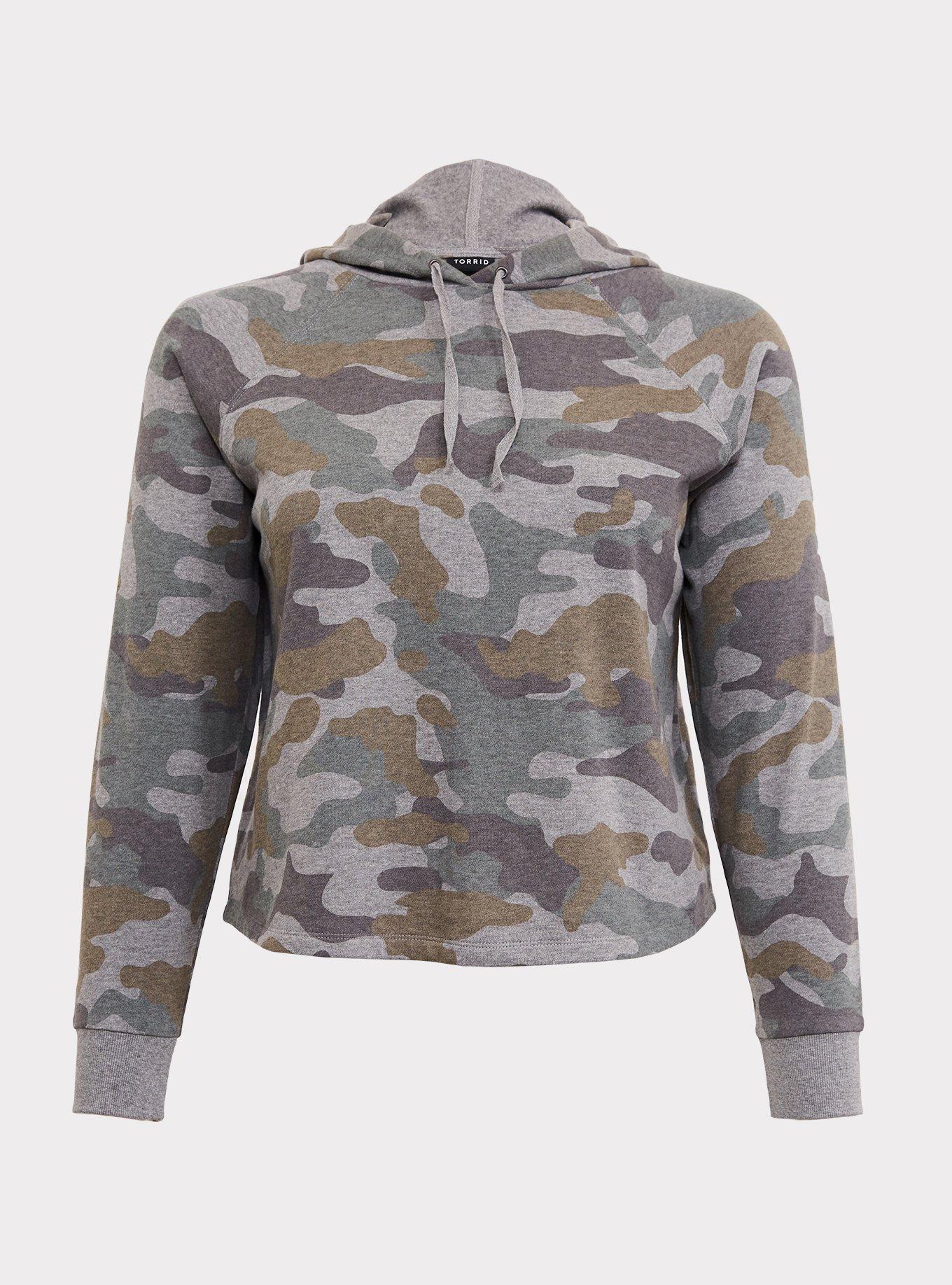 Plus Size Heathered Grey Camo Midi Hoodie Torrid
