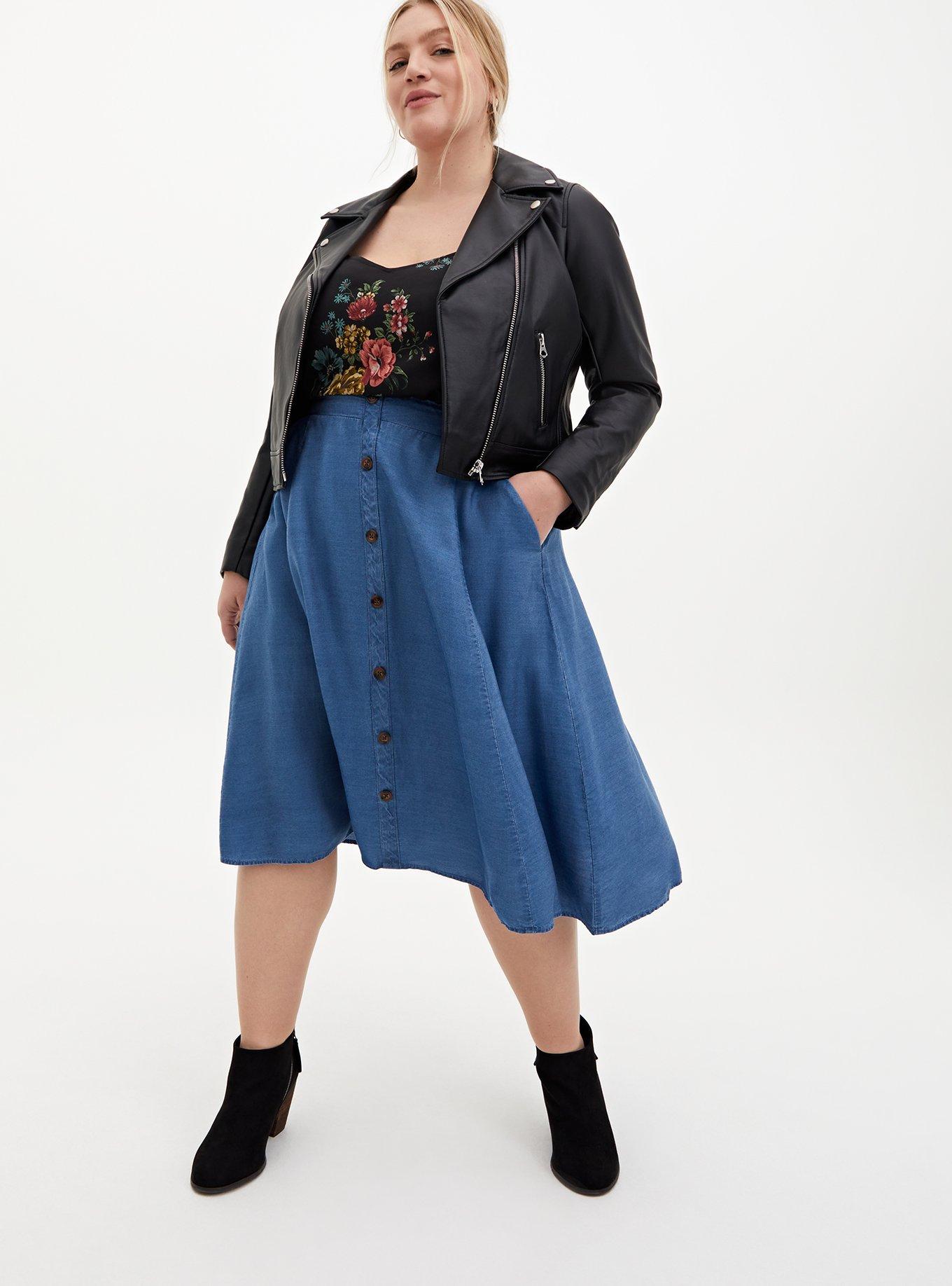Plus size chambray midi skirt clearance