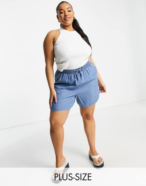 Vero Moda Curve chambray shorts in blue ASOS