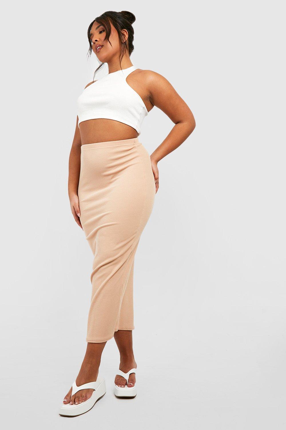 Women s Plus Crinkle Rib Midaxi Skirt Boohoo UK