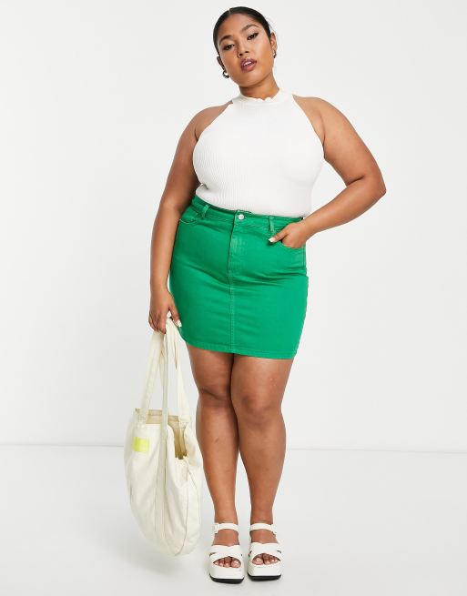 DTT Plus Gabby high waist denim skirt in green ASOS