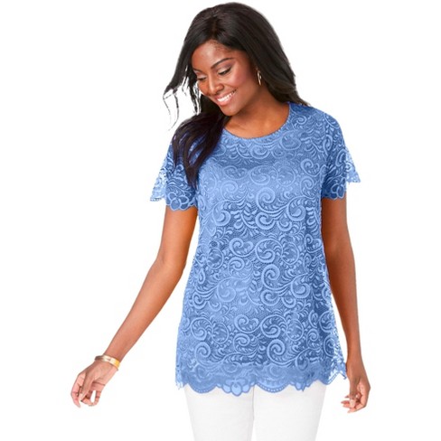 Jessica London Women s Plus Size Lace Tunic 26 28 French Blue