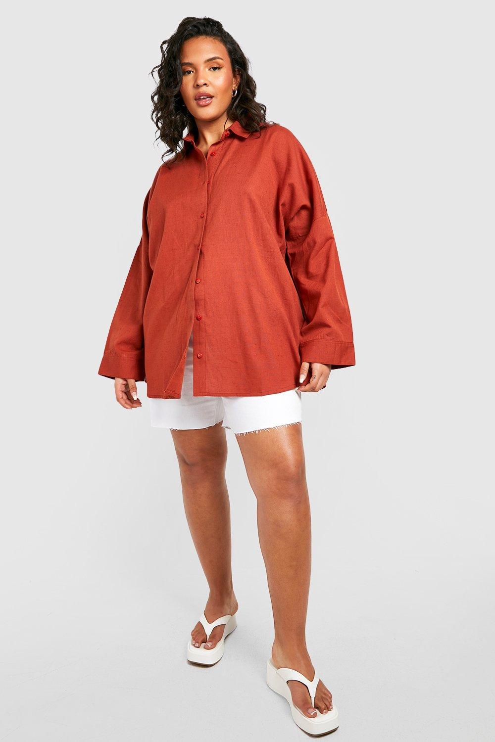 Women s Plus Oversized Linen Shirt Boohoo UK