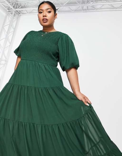 ASOS DESIGN Curve shirred tiered maxi dress in forest green ASOS