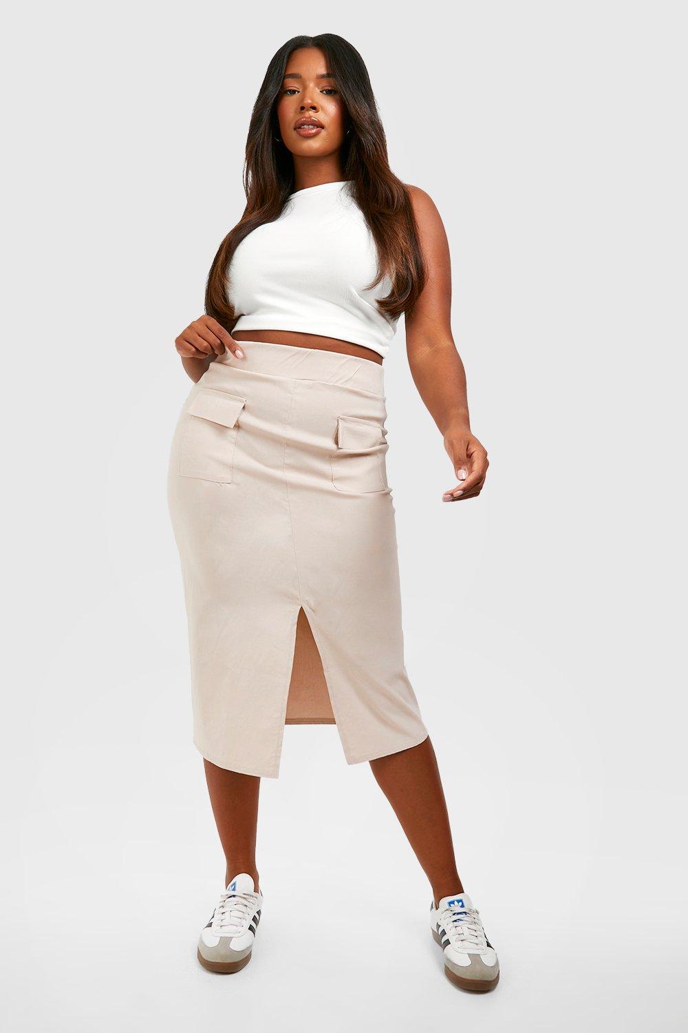 Plus Pocket Detail Split Front Midi Skirt boohoo