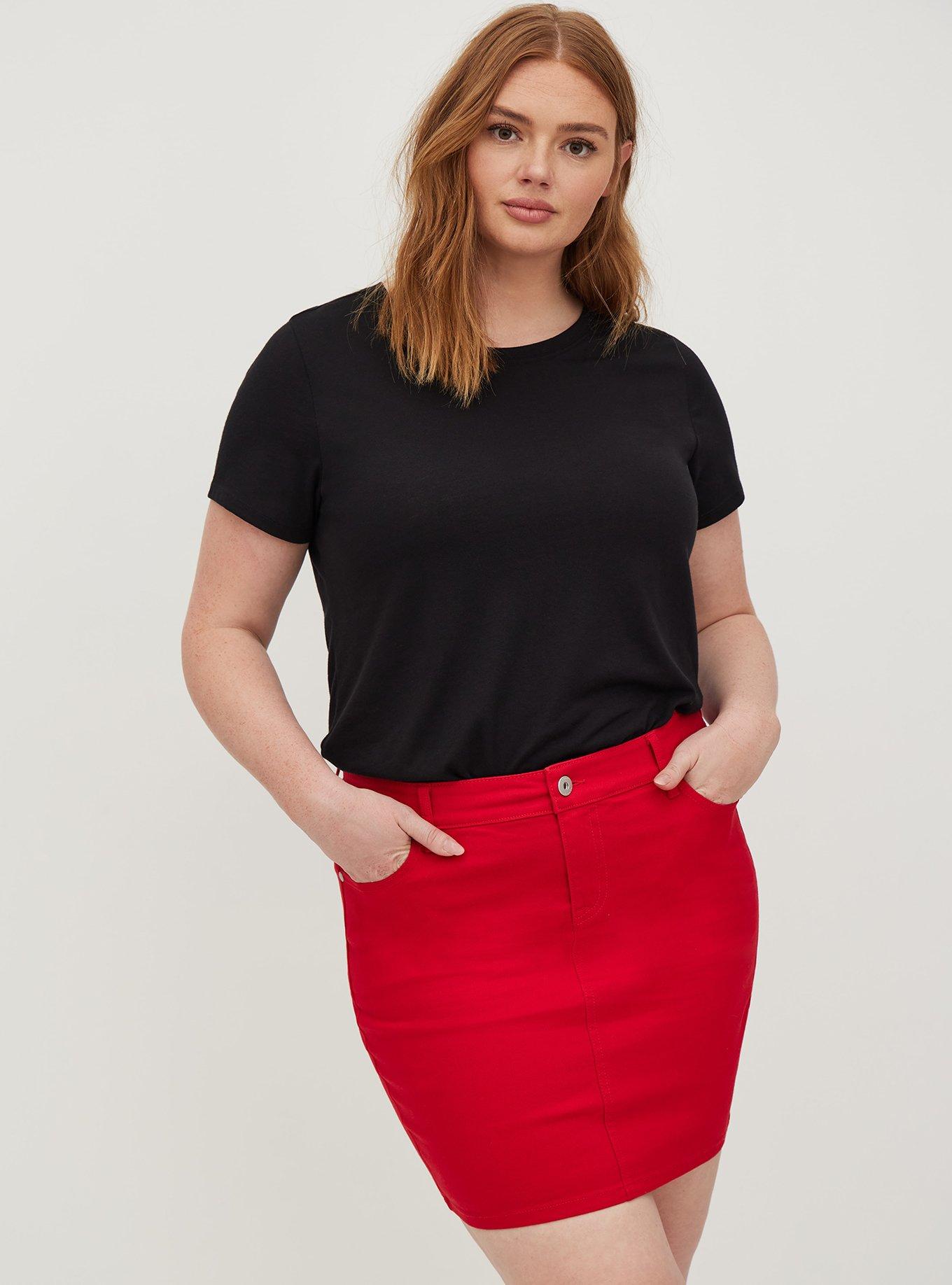Plus Size Ruby Red Denim Mini Skirt Torrid