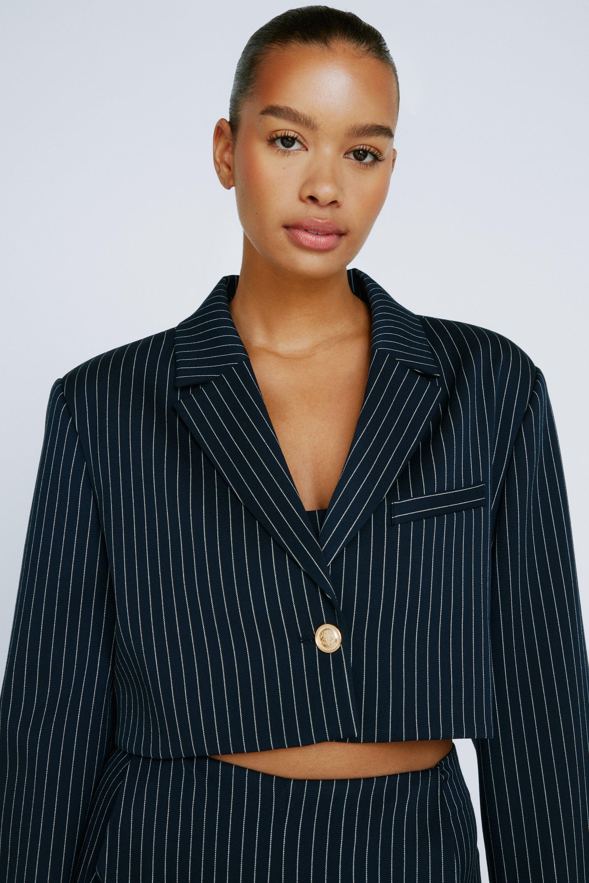 Plus Size Pinstripe Print Cropped Blazer Nasty Gal