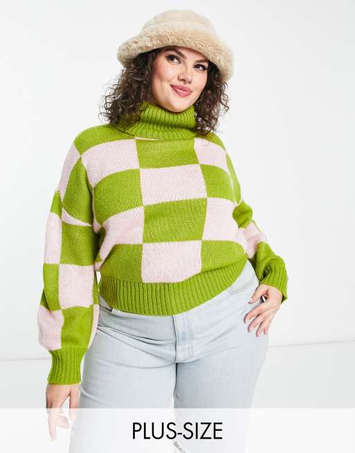 Native Youth Plus relaxed jumper with high neck in checkerboard