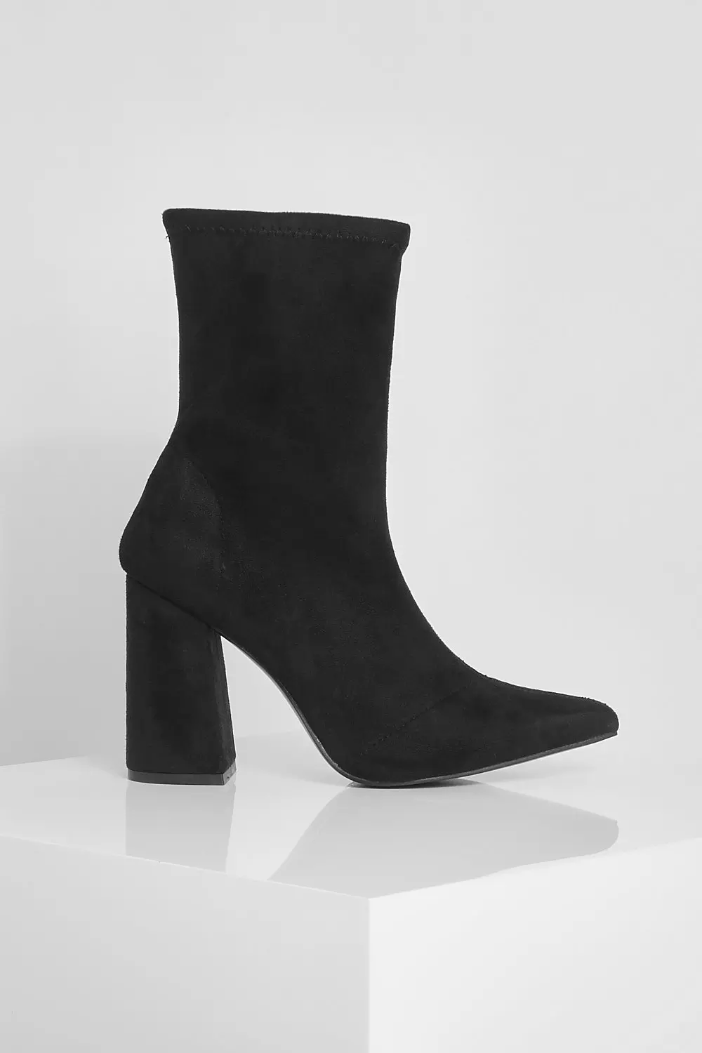 Black Block Heeled Point Toe Sock Boot PrettyLittleThing