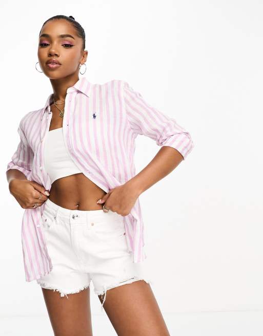 Polo crop top ralph lauren clearance, Polo Ralph Lauren icon logo stripe relaxed fit shirt in lilac clearance
