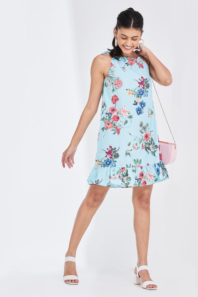 Buy INFUSE Floral Tie Up NecK Polyester Women s Shift Fit Dress