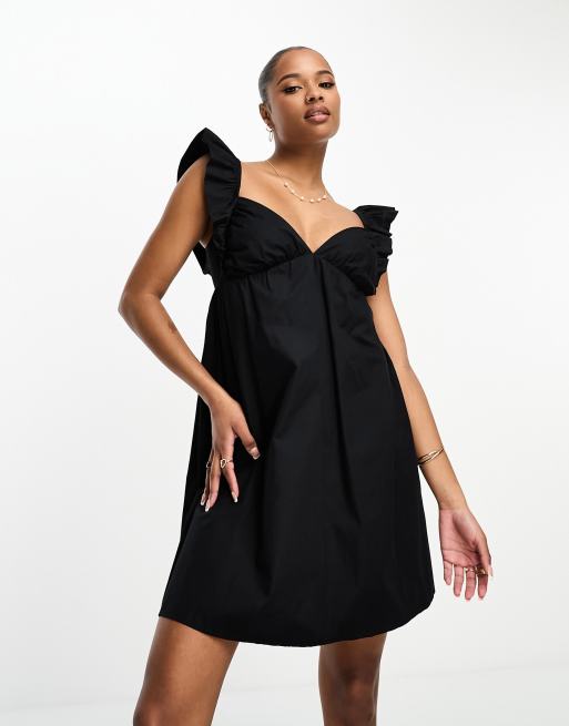 Miss Selfridge Petite poplin frill strap mini sundress with bow back in black