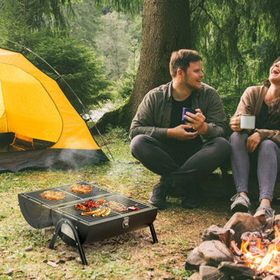 Portable bbq b&q clearance, Outsunny Garden Charcoal BBQ Cooker Portable Camping Tabletop clearance