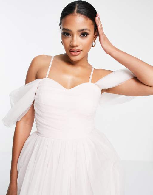 Lace Beads long sleeve tulle maxi dress in powder pink