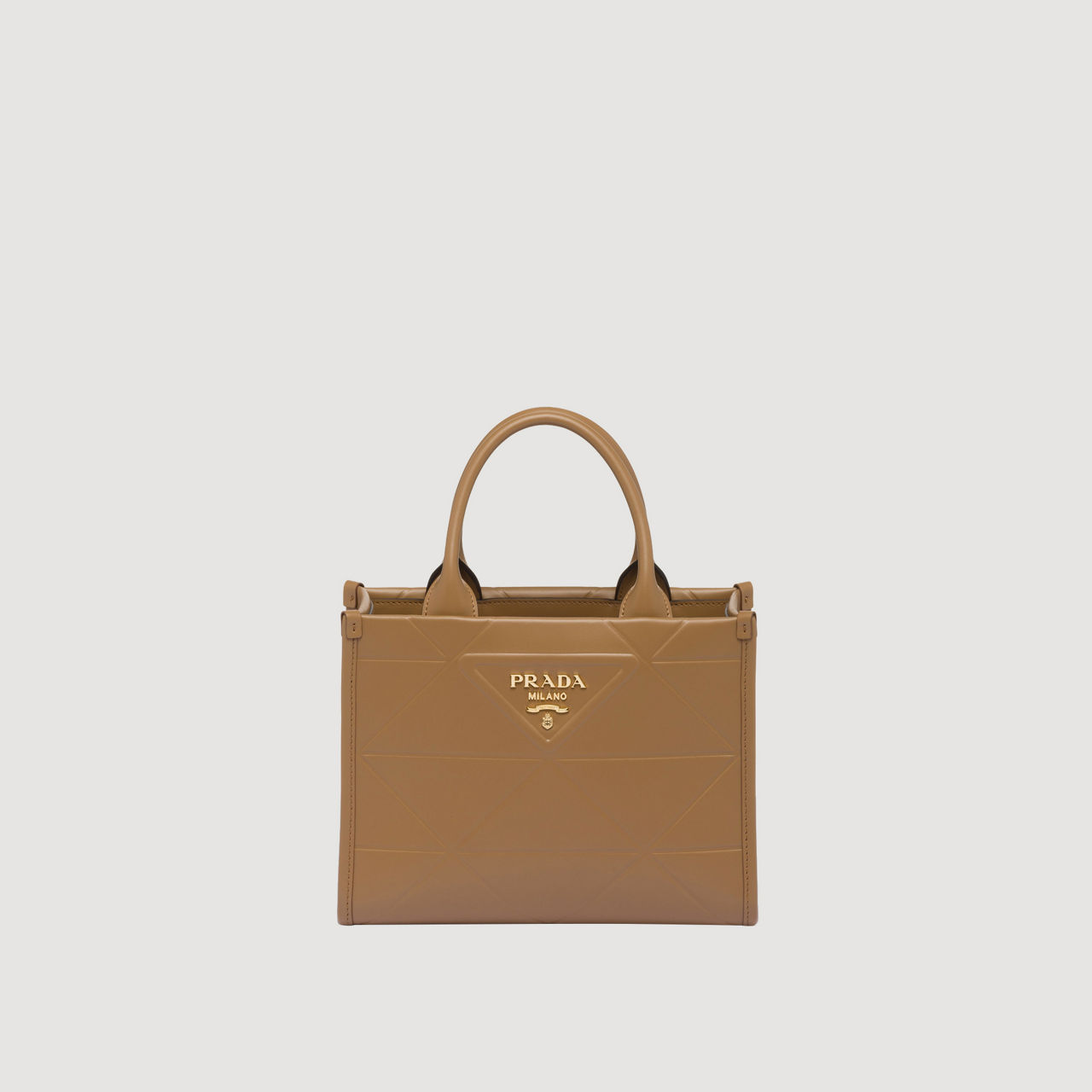 PRADA Symbole Mini Leather Topstitch Tote Bag
