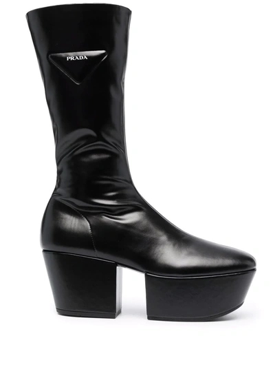 Prada Triangle Logo Platform Boots In Nero ModeSens