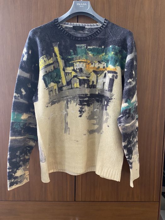 Prada Iconic Prada Printed Village Watercolor Sweater Grailed
