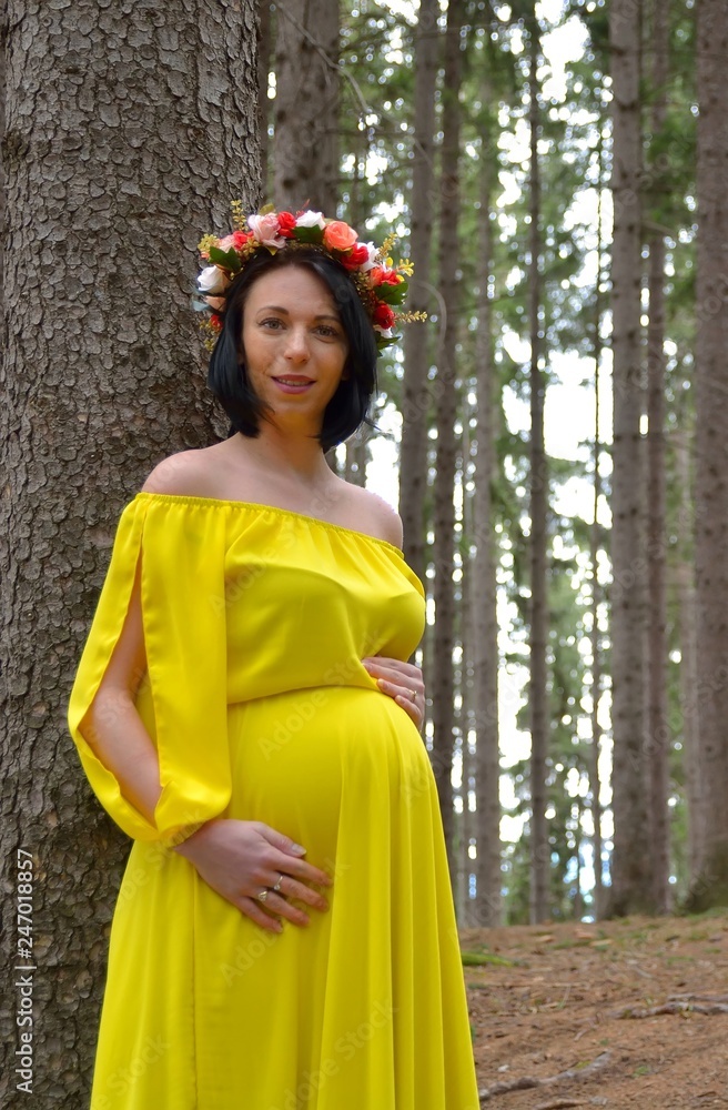 Beautiful pregnant woman in yellow dress Stock Photo Adobe Stock