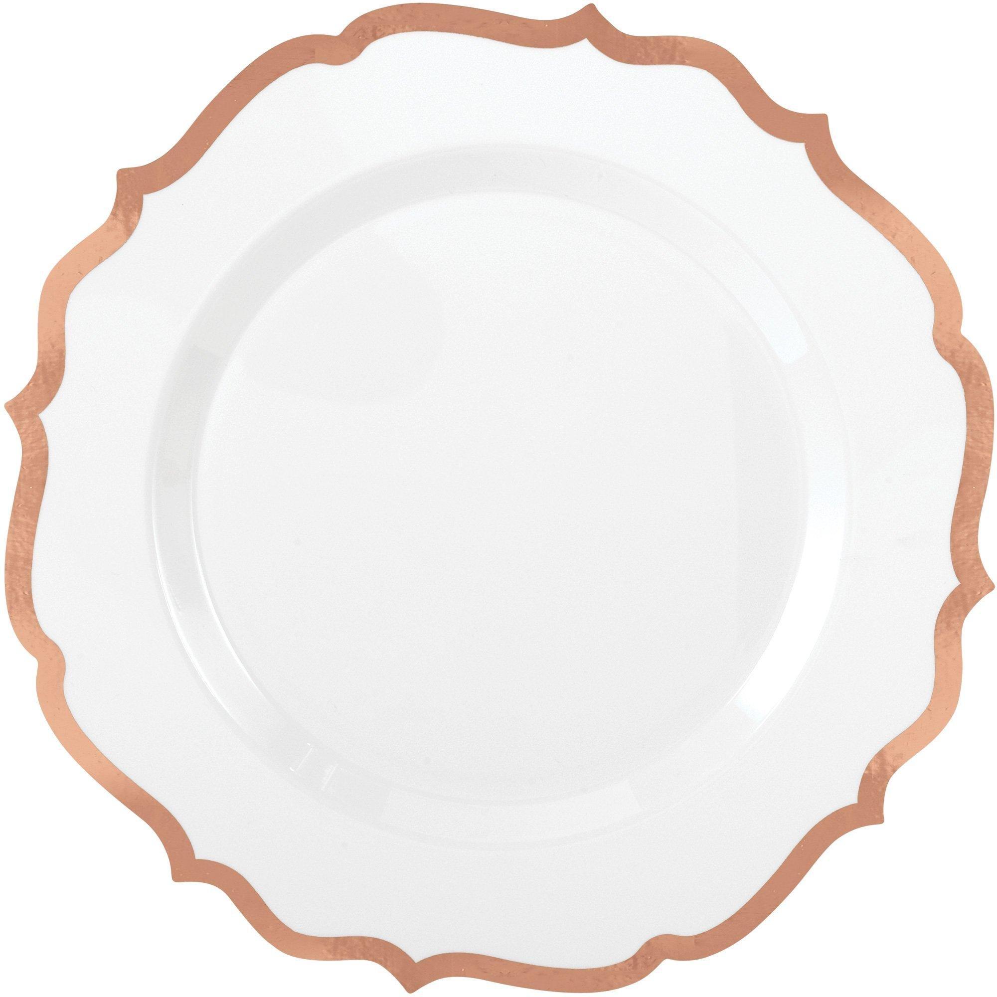 White With Ornate Rose Gold Rim Premium Plastic Dinner Plates