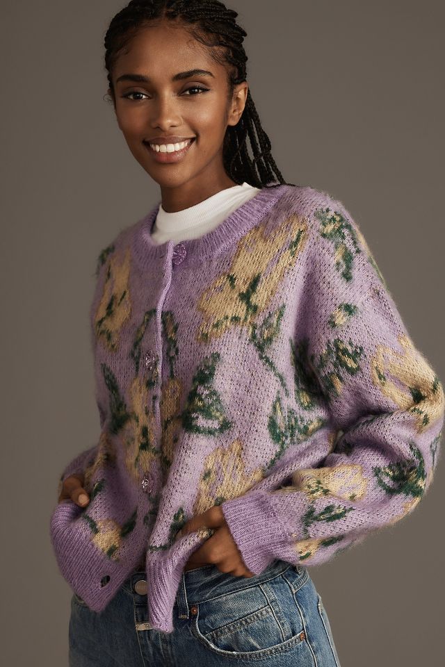 Printed cardigan sweater clearance