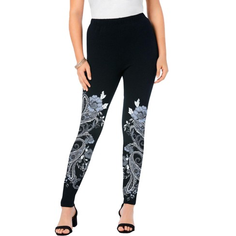 Roaman s Women s Plus Size Placement Print Legging 34 36 Black