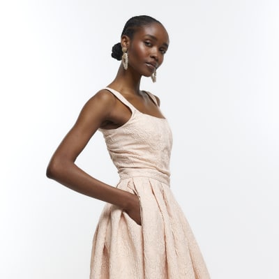Cinderella Divine Blush Pink Glitter Floral Swing Prom Dress
