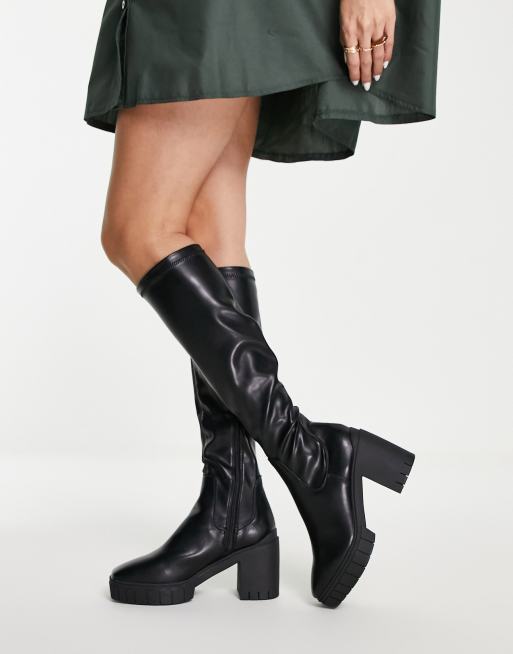 Genius Black Knee High Chunky Sole Boots Public Desire