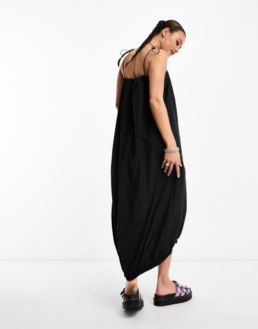 COLLUSION puffball drawstring strap maxi summer dress in black