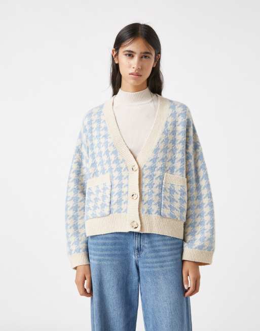 Pull Bear houndstooth cardigan in multi