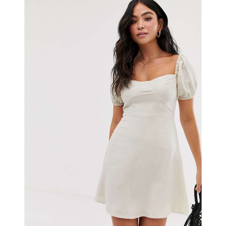 Pull and bear robe blanche clearance, Pull bear sweetheart neck dress in white clearance
