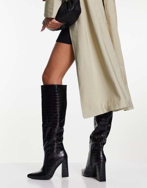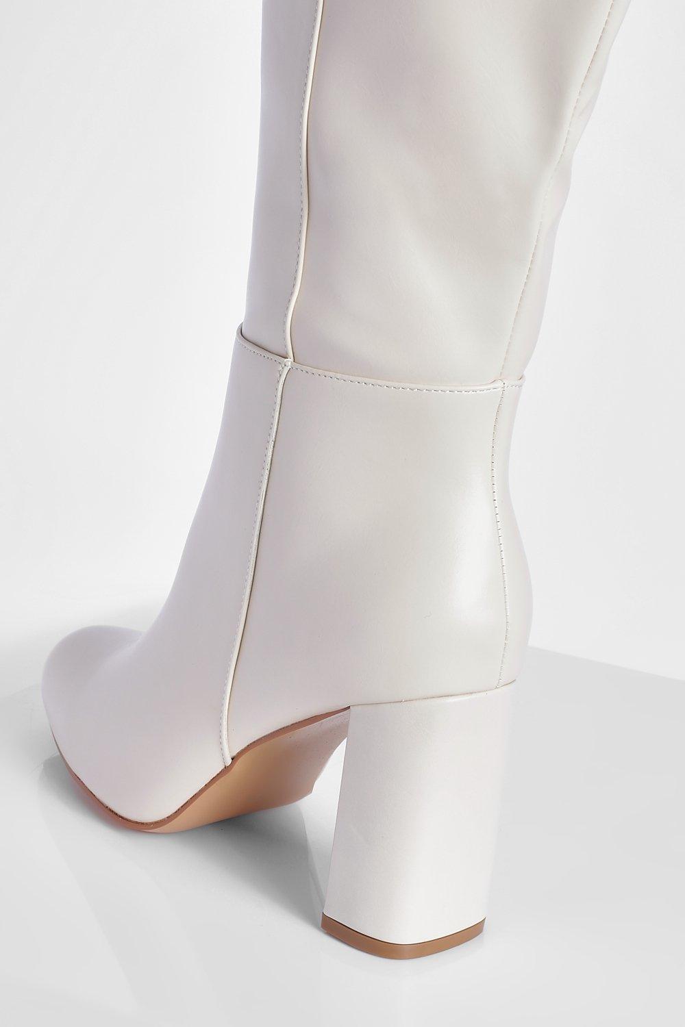 Pull on heeled boots clearance, Wide Fit Block Heel Knee High Pull On Boots Boohoo UK clearance