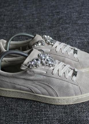 Puma Womens Basket Jewels Jeweled Suede Fashion Sneakers Black 6