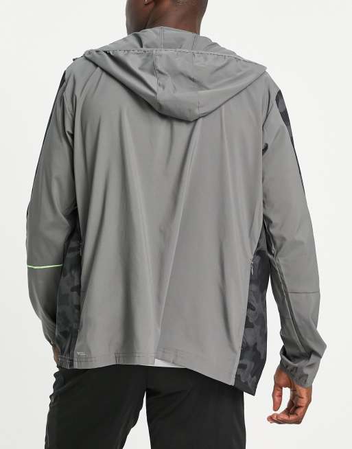 Puma Running hooded jacket in camo print grey