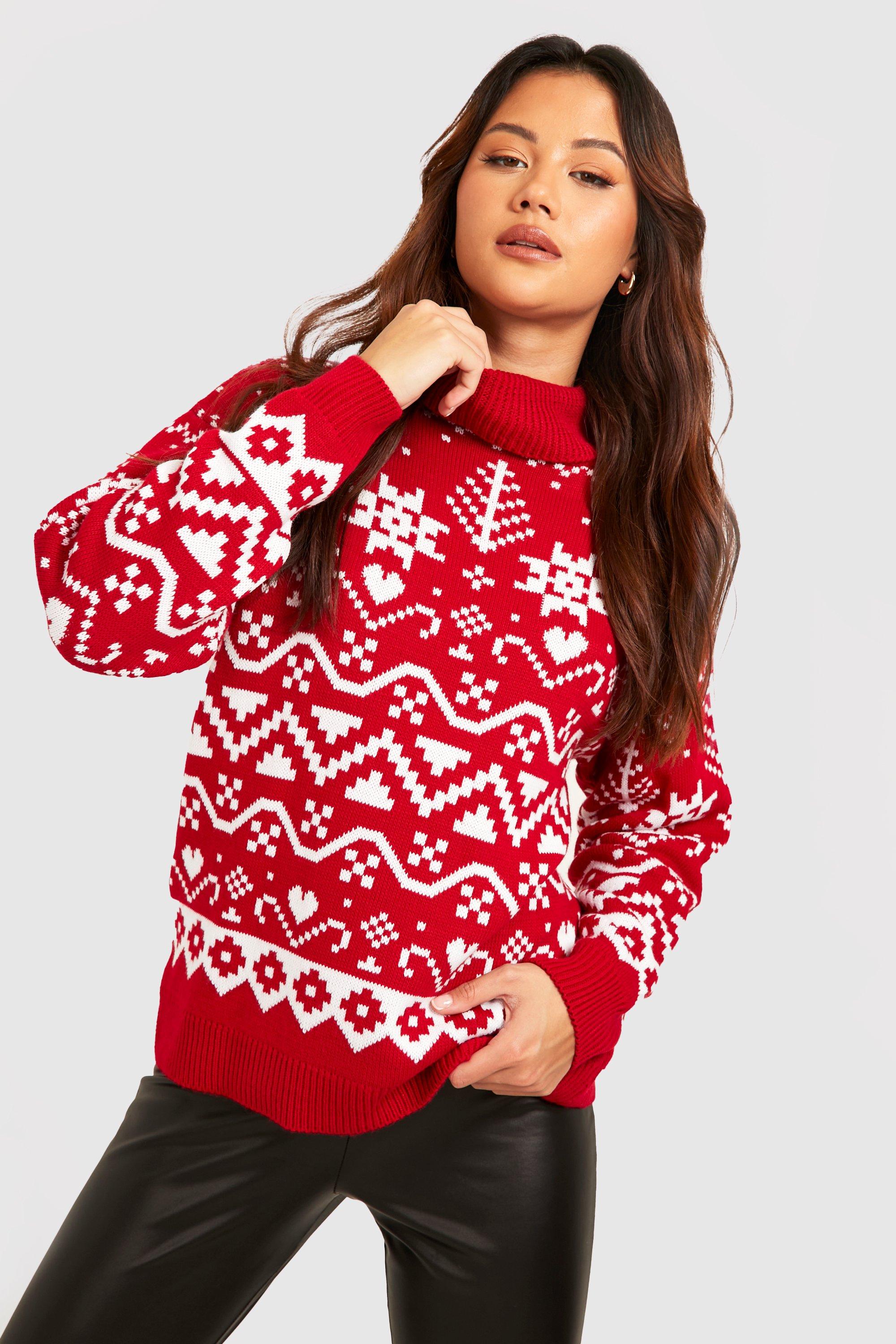 Petite Fairisle Turtleneck Christmas Sweater boohoo