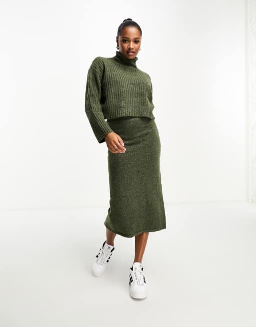 ASOS DESIGN Petite boxy jumper in rib with roll neck co ord in khaki