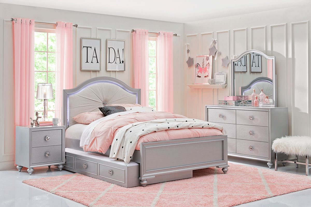 Evangeline 5 Pc Silver Gray Twin Bedroom Set With 3 Pc Twin